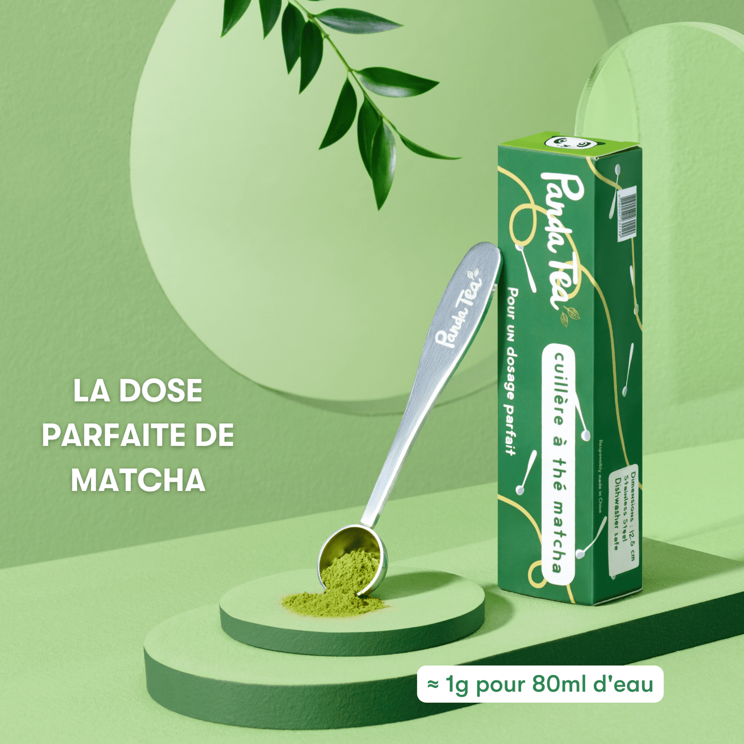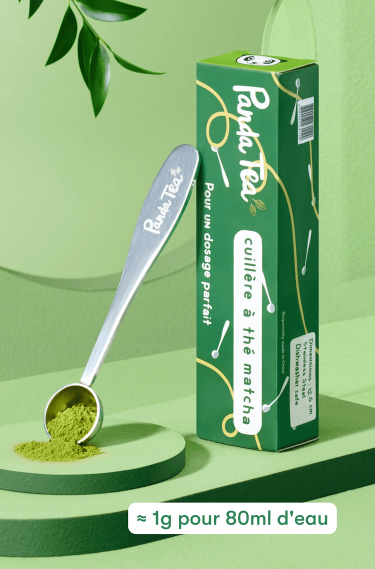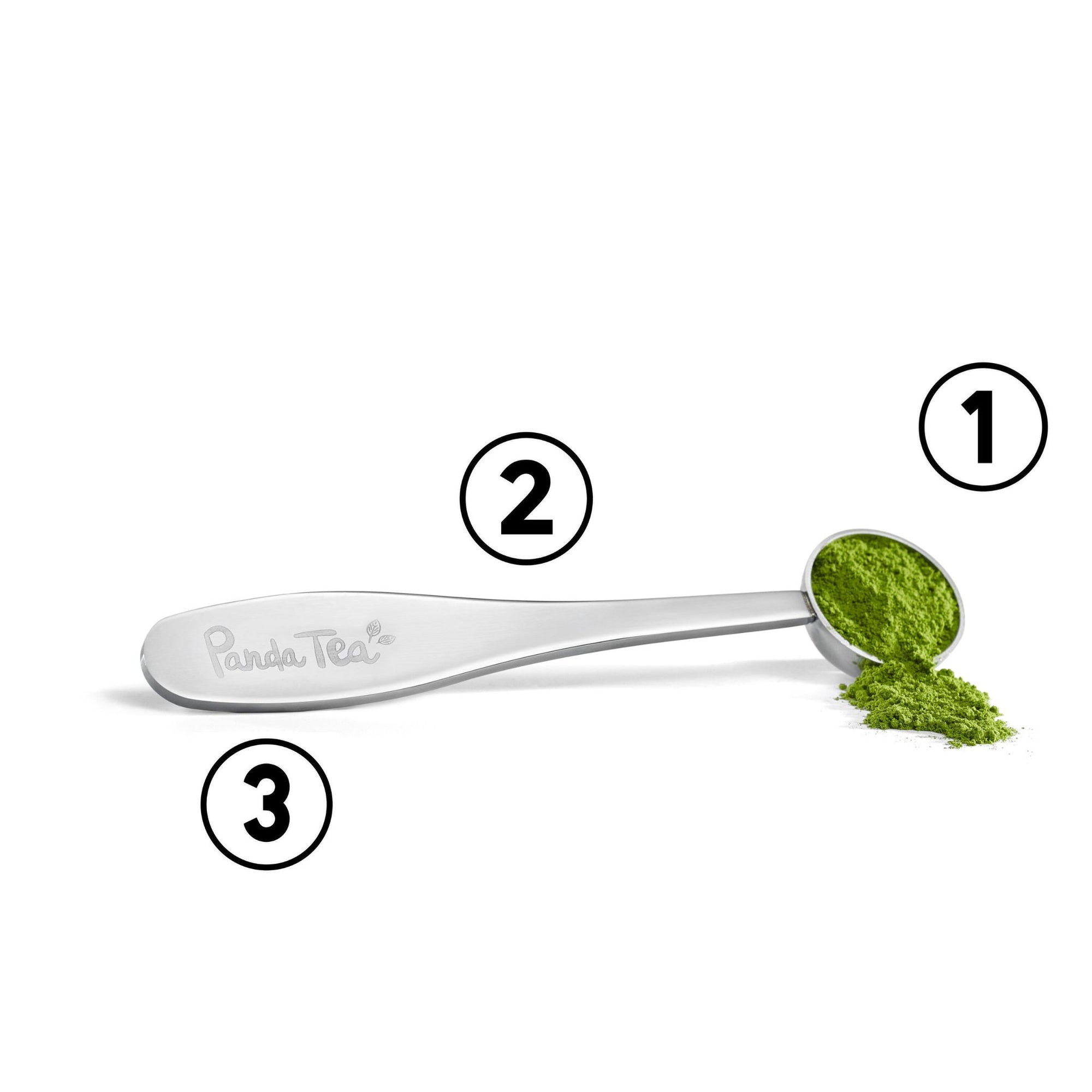 - Versez 1g de matcha dans votre bol à l'aide de votre cuillère Panda Tea.
