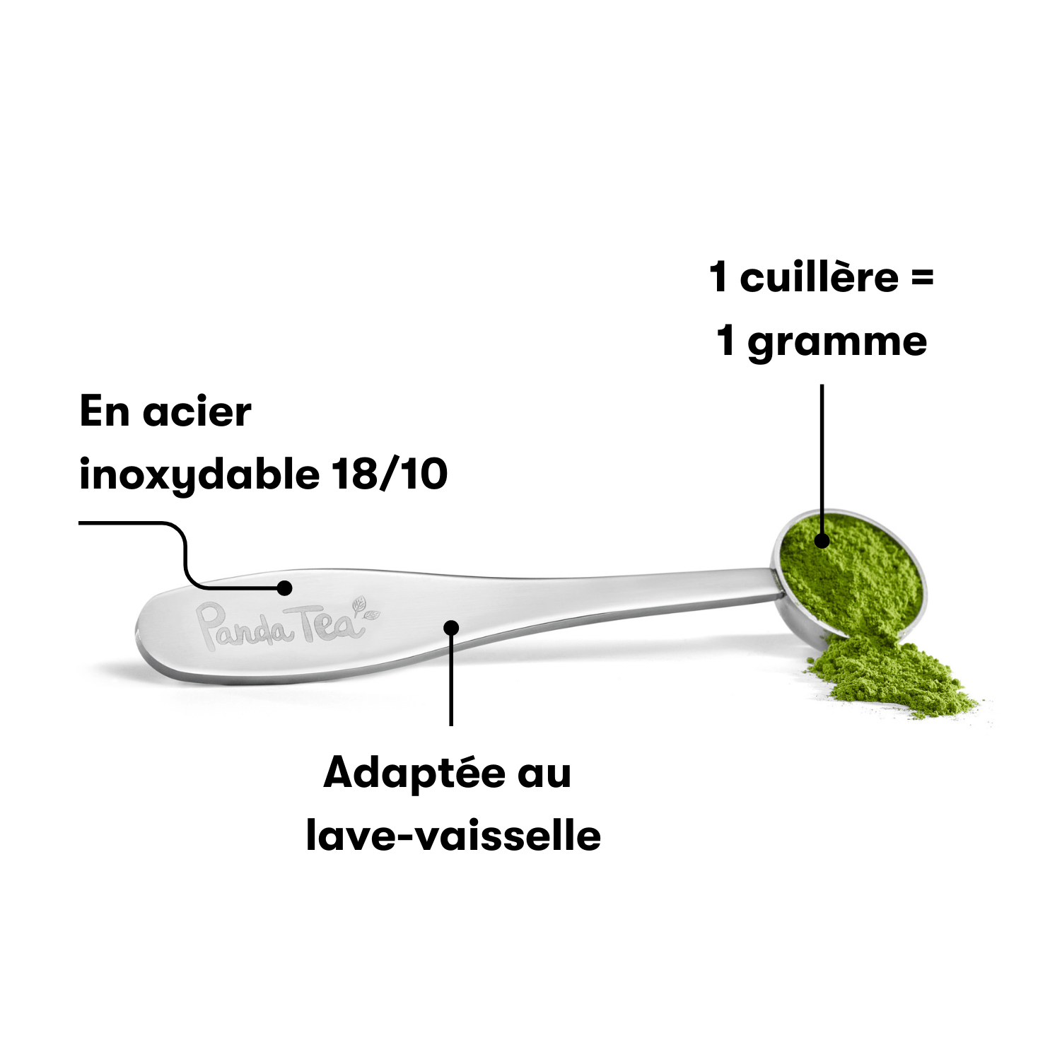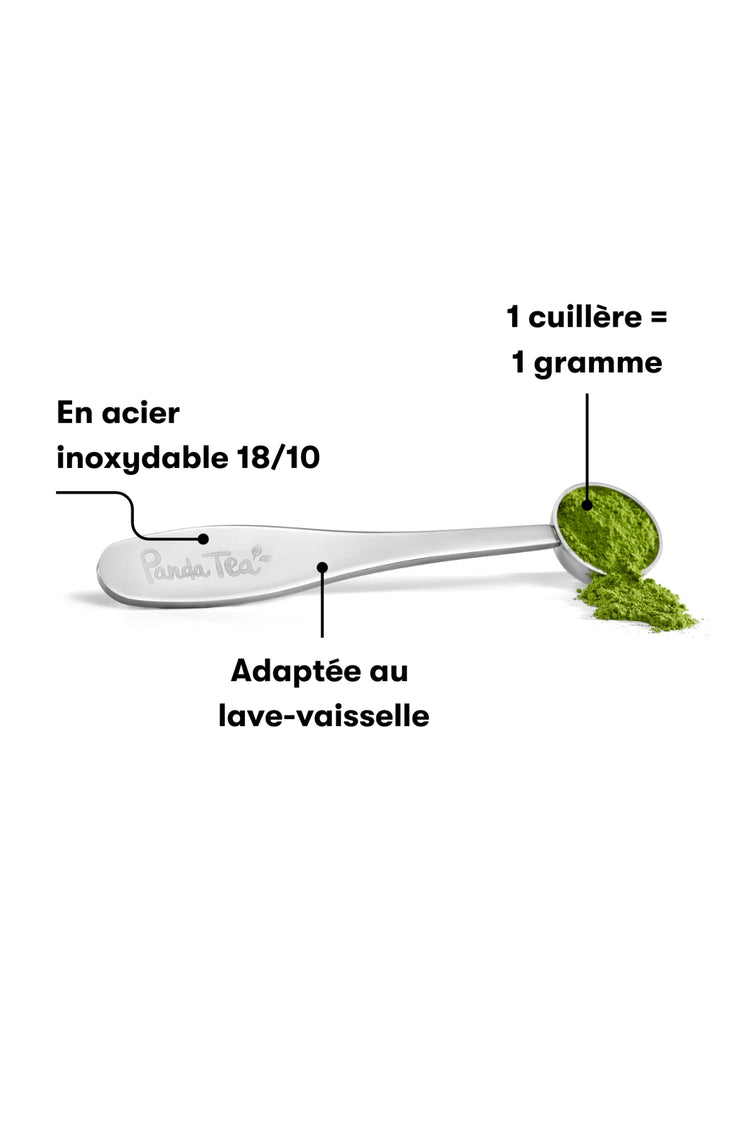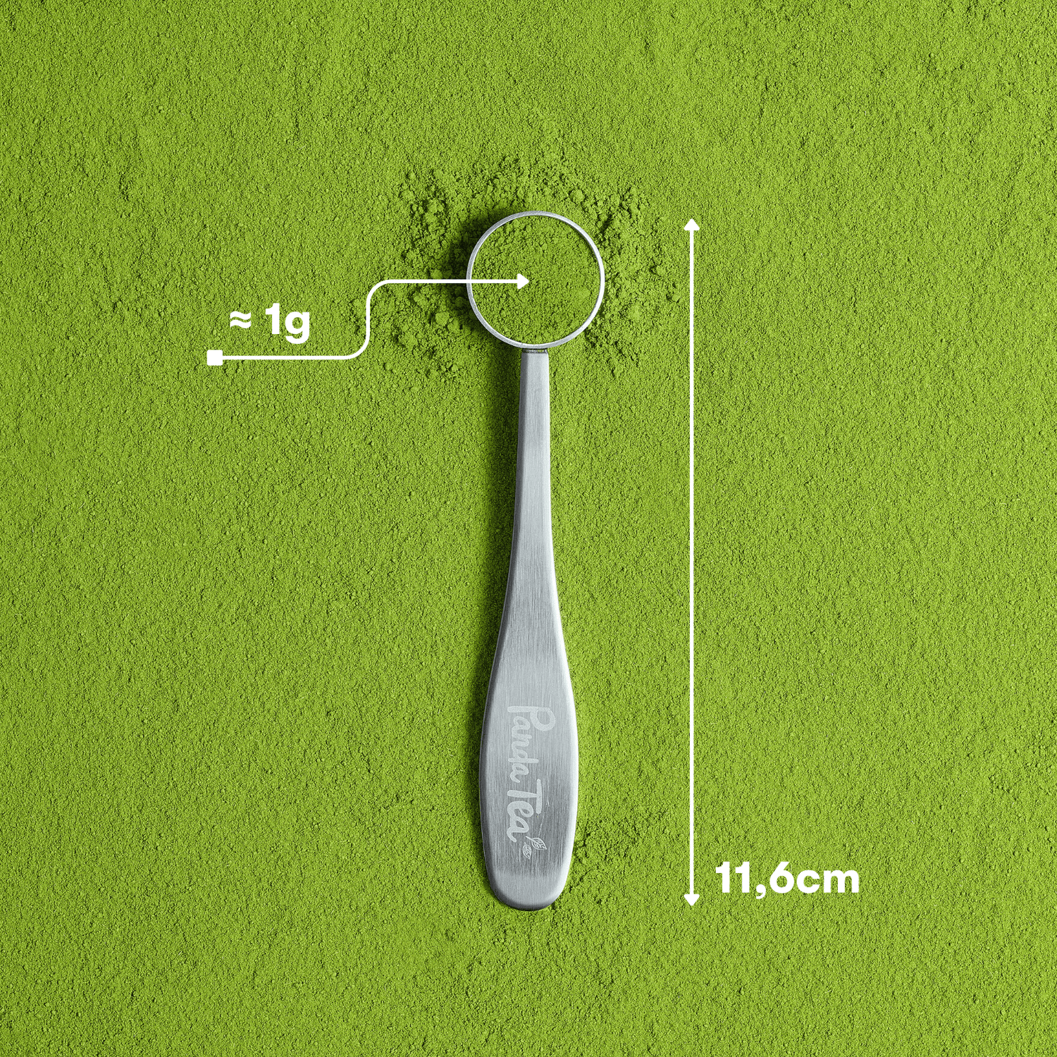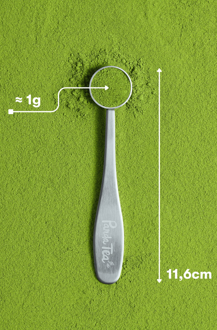 La cuillère doseuse en acier inoxydable Panda Tea est l'accessoire indispensable pour réaliser un matcha dans les règles de l'art, vous permettant ainsi de respecter la dose parfaite de matcha pour 80ml d'eau. Conçu pour un usage alimentaire, cet accessoire est fabriqué à partir d’acier inoxydable 18/10 de qualité supérieure.