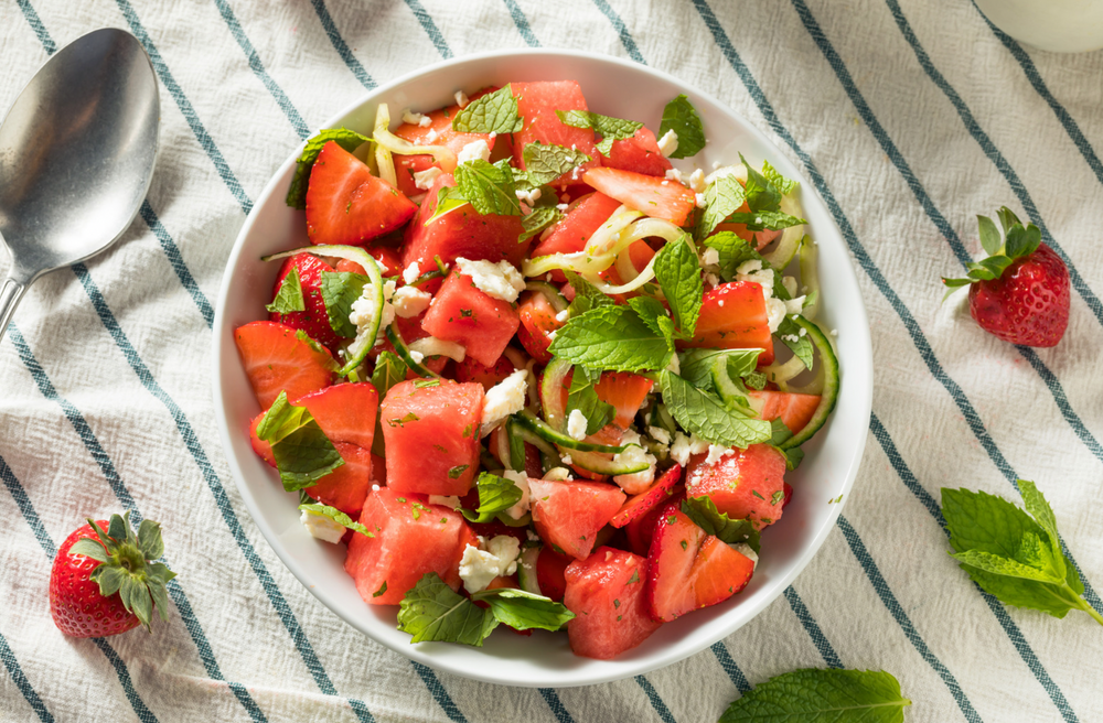 RECETTE : SALADE DE PASTÈQUE, FRAISES ET FETA