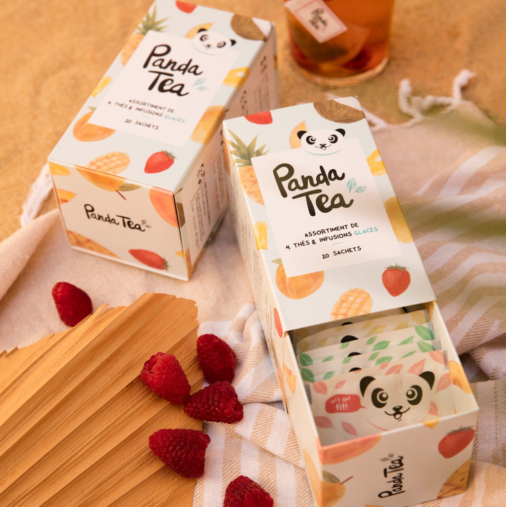 Vous voulez tester de nouvelles recettes d'eaux parfumées ? Laissez parler votre inspiration ! Mettez dans votre pichet vos fruits préférés, puis choisissez le mélange de thé glacé le mieux assorti pour relever leurs arômes. Notre coffret de 20 sachets vous permettra de tester 4 goûts différents :