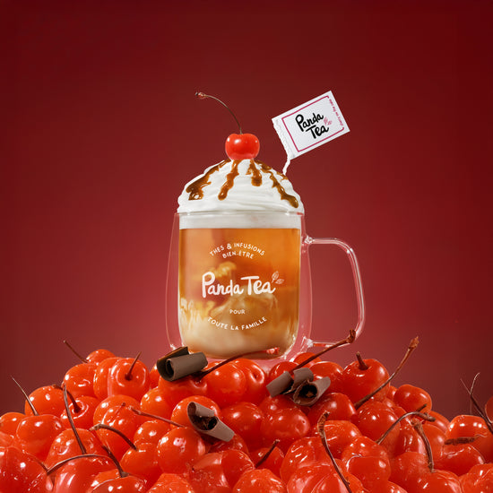 - Cherry On The Cake de Panda Tea est un Thé noir gourmand aux notes de cacao et de cerise, combinée à des ingrédients naturels pour un moment de détente et de plaisir