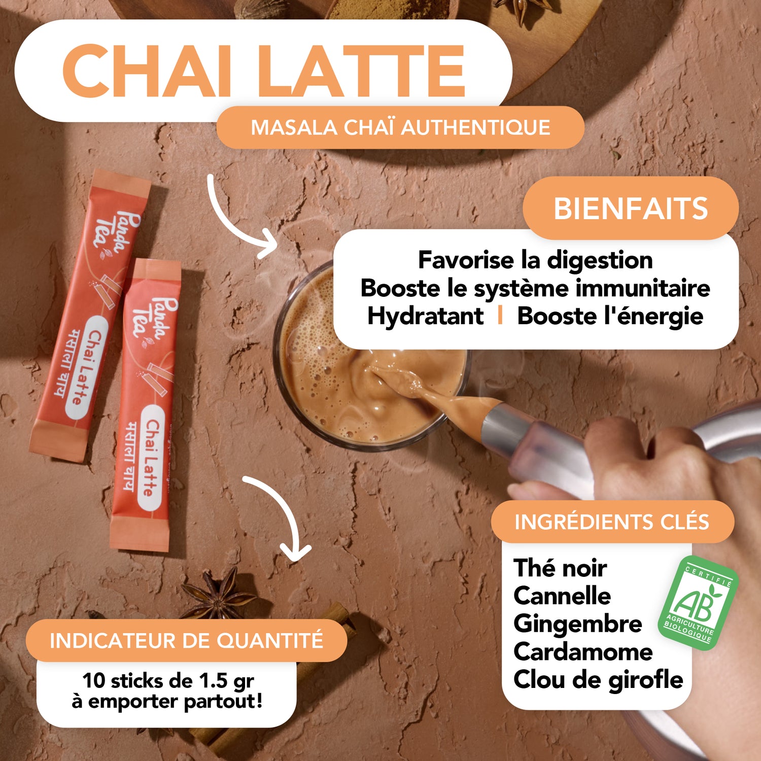 Bien qu'il soit possible de consommer le Chaï "nature", il est très répandu d'y ajouter du lait chaud pour en faire un Chaï Latte aux arômes d’arômes boisés, épicés et légèrement sucrés qui rappellent les douceurs des épices indiennes et les traditions chaleureuses du sous-continent. Bien entendu, vous pouvez également opter pour votre lait végétal préféré pour confectionner le meilleur Chaï Latte possible.