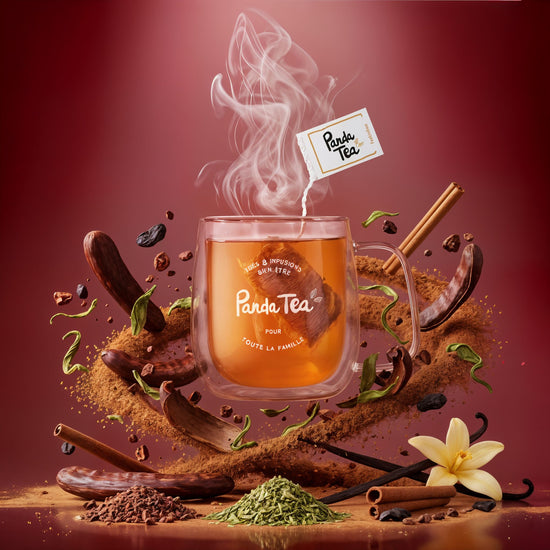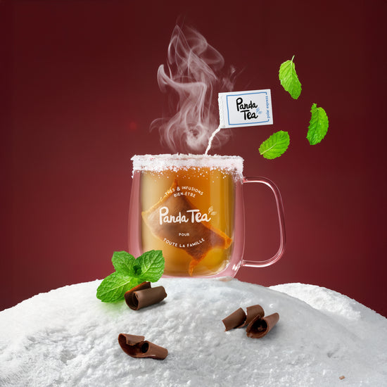 Enfin, cet assortiment inclut notre Tasse Double Paroi en Verre Panda Tea, édition de Noel (350mL). Profitez de vos boissons chaudes plus longtemps sans vous brûler les mains. Sa transparence sublime les couleurs des infusions et son design exclusif de Noël apporte une touche festive et chaleureuse à vos pauses thé.
