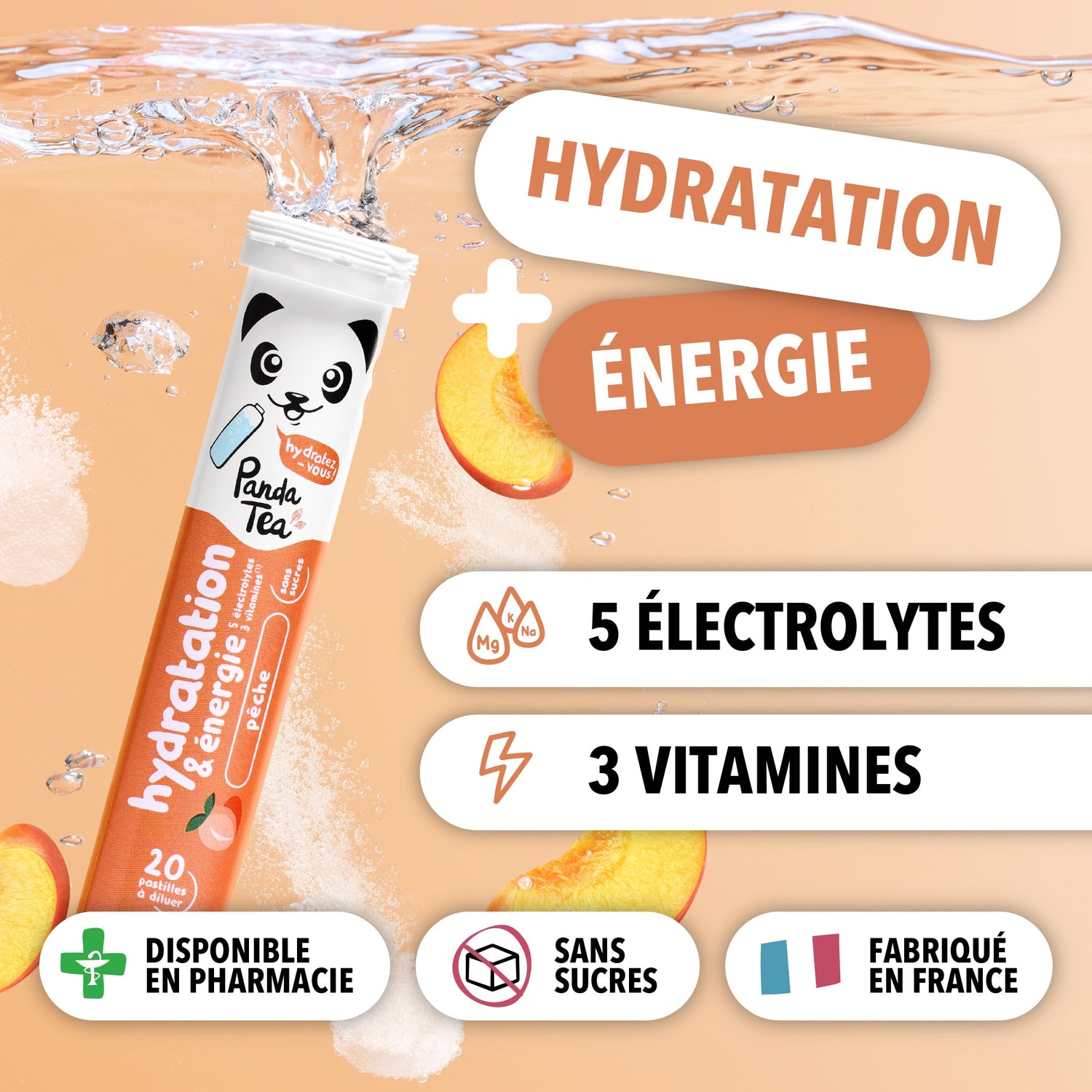 Les pastilles effervescentes Panda Tea Hydratation sont idéales pour bien s'hydrater toute l’année et retrouver de l'énergie. En plus de leur délicieux arômes naturels, elles sont riches en électrolytes (minéraux essentiels) et en vitamines, ce qui en fait une solution d'hydratation idéale pour vous accompagner lors :