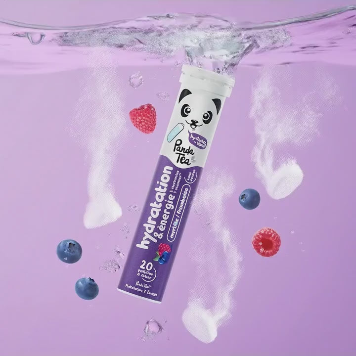 Les pastilles effervescentes Panda Tea Hydratation sont idéales pour rester hydraté toute l’année et booster votre énergie. En plus de leur délicieux arômes naturels, elles sont riches en électrolytes (minéraux essentiels) et en vitamines, ce qui en fait une solution d'hydratation idéale pour vous accompagner lors :