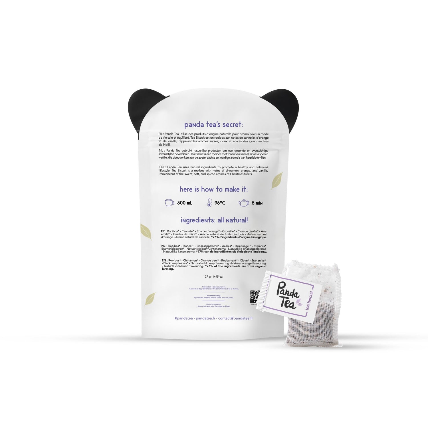 Le Tea Biscuit de Panda Tea est une tisane gourmand aux notes de cannelle et d'orange, combinée à des ingrédients naturels pour un moment de détente et de plaisir :