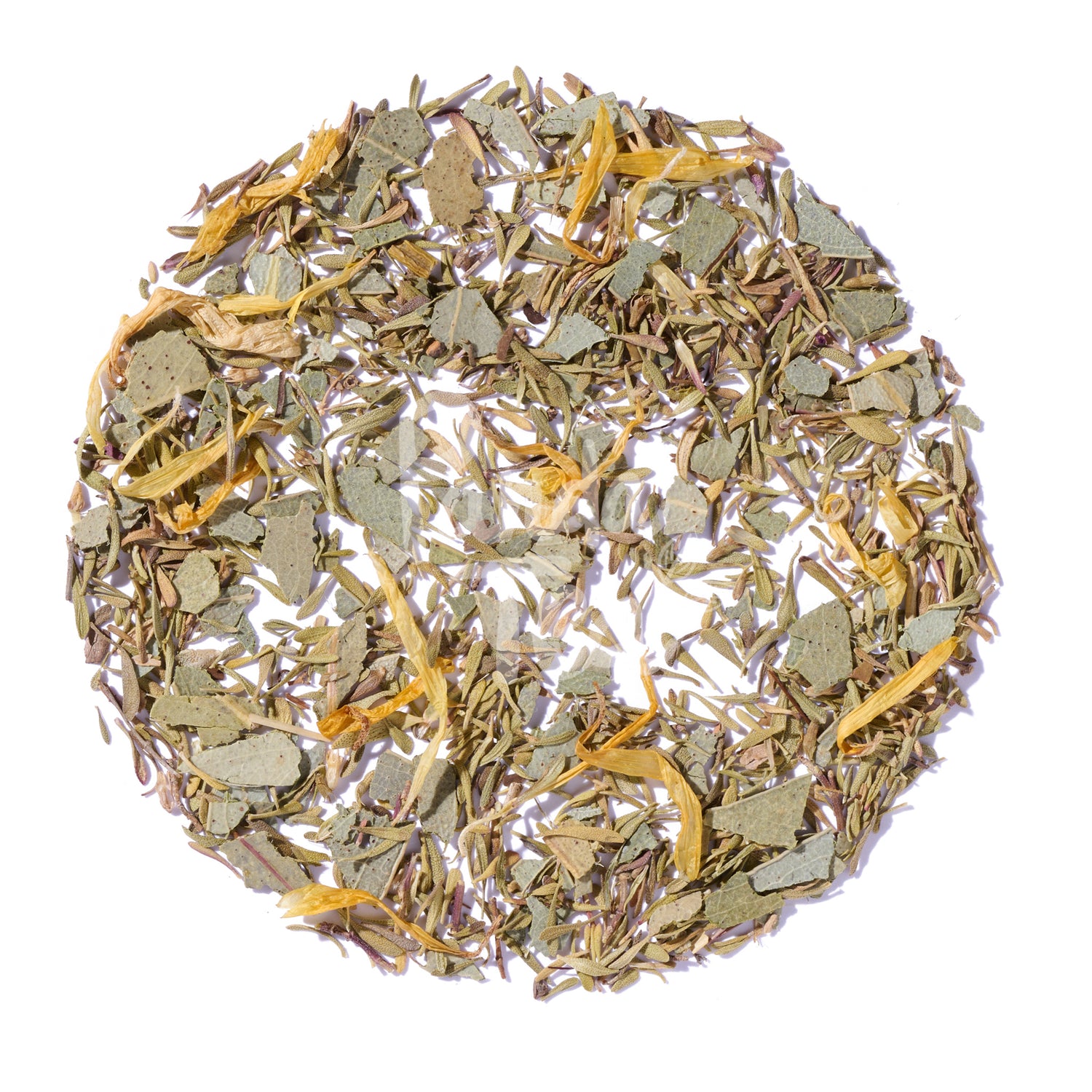 Tea Voice est une infusion à base de Thym, d'Eucalyptus et de Fleurs de Souci. Ces plantes sélectionnées avec soins par notre pharmacien sont reconnues pour leurs bienfaits contre les irritations de la gorge et des voies respiratoires et leur soutien au système immunitaire :